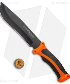 The Boker Magnum FFB is half survival knife, half machete. The blade is made of a 440A stainless steel with a thin blade stock that make quick work of vines, branches, and other light foliage. The handle is made of hi-viz orange plastic with rubber inlays to ensure a secure grip, even when wet.