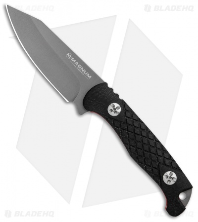 - Clip point 440 steel blade with a gray finish.
