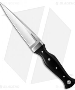 This version from Boker Magnum has a satin finished 440 stainless steel blade that tapers to a point and features an appealing ricasso. The handle scales are classically shaped black Micarta. Includes a black leather sheath with clip.