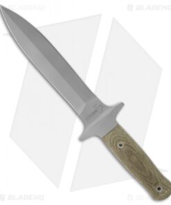 The fully double-edged 7″ blade provides an impressive appearance. Carefully sculptured green canvas Micarta scales provide an excellent grip under all conditions. Comes with a high quality black leather sheath.