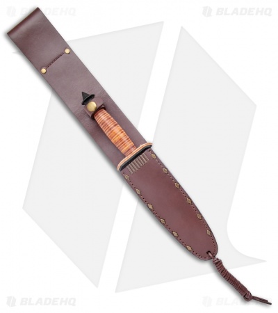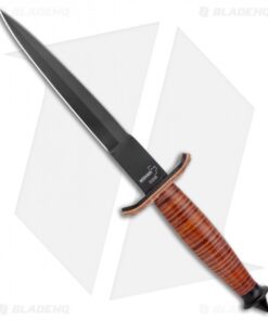 An important piece of equipment of the Devil’s Brigade was the specially designed V-42 combat knife, which was also part of the intensive close combat training. The handle of compressed leather discs ends in a pointed impact cap. A thick leather padding underneath the slightly curved pommel offered protection from injury. The double-edged blade of the dagger features a corrugated thumb rest for a secure grip. To this day, the crest of the Special Forces of the U.S. Army adorns this legendary dagger. We not only deliver this exclusive collector’s item with its classic leather sheath, but also with a replica of the cloth insignia of the unit, which is the red spearhead, and with a reproduction of the original German sticker with the words “The worst is yet to come!”, which was stuck behind enemy lines in order to demoralize the enemy. A premium collector’s ensemble, especially ideal for aficionados of military history!