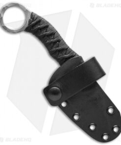 Made by Sebastijan Berenji, the Borka Blades SRambit fixed blade has a full-tang M390 steel blade with a black katana style wrapped handle with a karambit finger ring. The knife has carved faces and a dark stonewash finish. It comes with a Kydex sheath and leather belt loop. Pictures are of the actual knife for sale.