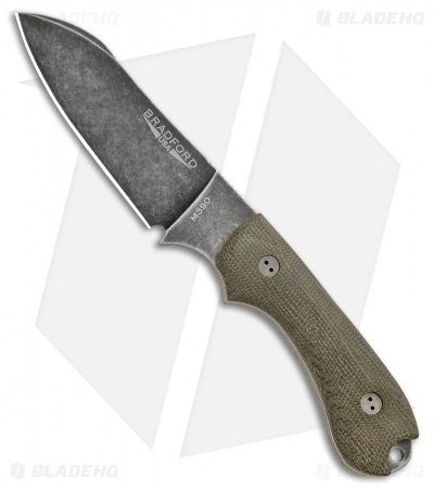 The Guardian3 is a relatively compact fixed blade that is designed to handle the work load that might typically fall upon a heavy duty everyday folder. Bradford Knives uses Bohler N690 steel with a double temper and cryo treatment for exceptional blade characteristics. 3D micarta scales offer a comfortable grip without being abrasive. Each knife includes a premium leather sheath with belt loop and plastic blade insert.