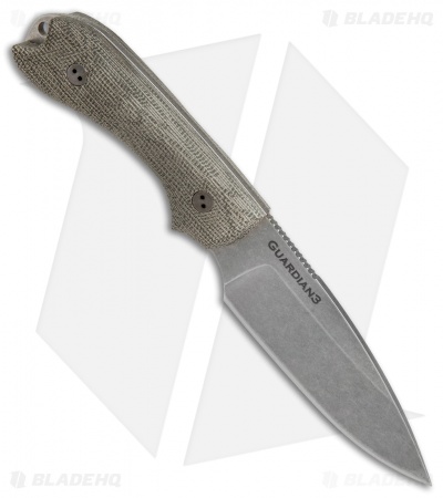 This Guardian3 model has a Sabre style blade with a stonewashed finish and 3D OD green micarta handle scales.