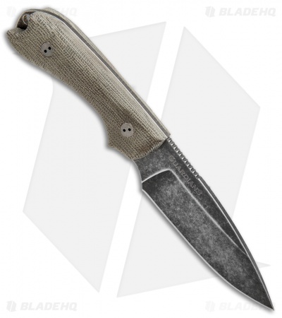 This Guardian3 model has a Sabre style blade with a Nimbus finish (black/stonewash) and 3D OD green micarta handle scales.