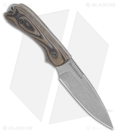 When you take this knife into your hand, you’ll have no doubt you’ve had the good fortune to acquire an excellent fixed blade. The updated Bradford Guardian3 has a gorgeous MagnaCut steel blade with Bradford’s signature grind quality, and the drop point is finished in a beautiful stonewash finish. The knife is compact, but super-strong with its full tang construction, weather-proof scales, and pommel crusher. The shaping in the handle and choil, and the heavy jimping on the spine, make choking up on it comfortable and convenient. The piece is strong and sure without weighing too much. Each knife includes a premium leather sheath with belt loop and plastic blade insert.