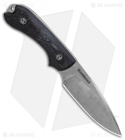 This Guardian 3 model has a stonewash finished blade with a false edge grind and 3D black Micarta handle scales.