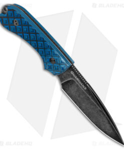 - Black and blue checkered G-10 handle.