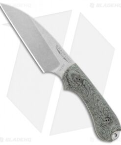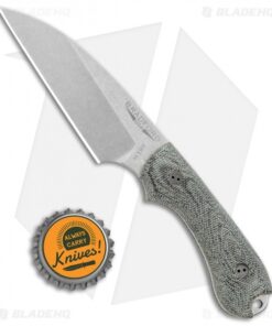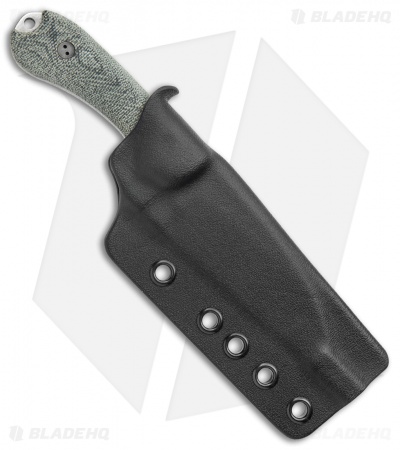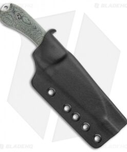- Green micarta handle with a lanyard hole.