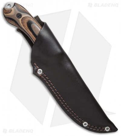 The Guardian4 joins the Bradford Knives lineup, offering a larger blade that is well-suited for camping and hiking activities. It shares the same design as the Guardian3 and is available in a false edge (swedge) or sabre grind, with several blade finish options. The choil is designed to easily strike a ferro rod and the handle has G-Wood scales (spanner #6 is required to remove scales). Each knife includes a premium leather sheath with a protective plastic blade insert and is set up for vertical carry.