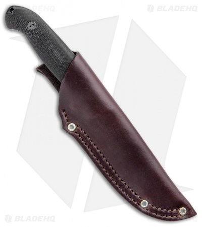 - Vertical carry leather belt sheath with plastic insert for proper blade alignment.