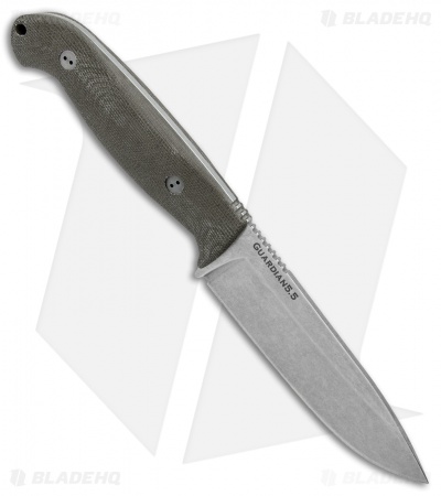 This Guardian5.5 model comes outfitted with 3D OD green micarta scales and a stonewashed 3V steel blade with a Sabre grind.