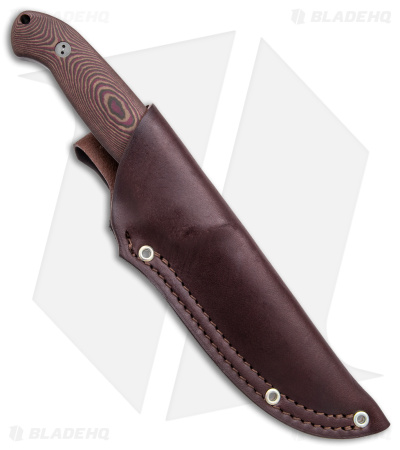 - 3D microtextured chocolate and red Richlite handle scales over a full tang.