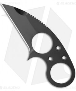 The Jason Brous Silent Soldier fixed blade knife features black finished D2 tool steel construction. The Wharncliffe style blade has a 2.31″ cutting edge and the handle has a double hole design with a finger groove and safety finger guard incorporated in the design for superior grip. This is a superb design for neck carry and includes a formed Kydex sheath with clip and ball chain.