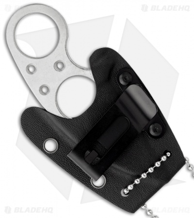 The Jason Brous Silent Soldier fixed blade knife features stonewash finished D2 tool steel construction. The Wharncliffe style blade has a 2.31″ cutting edge and the handle has a double hole design with a finger groove and safety finger guard incorporated in the design for superior grip. This is a superb design for neck carry and includes a formed Kydex sheath with clip and ball chain.