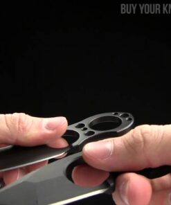 The J. Brous Silent Soldier V2 knife features a drop point style blade. The satin finished D2 tool steel has a double hole design with a middle finger groove and built in finger guard thumb for superior grip. This is a superb design for neck carry and includes a formed Kydex sheath and ball chain.