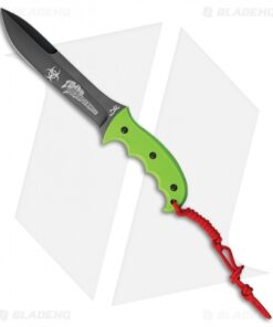 - Neon green polymer handle over a full tang.