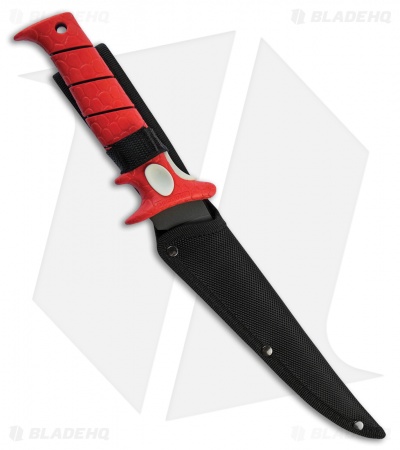 Bubba Blade offers a wide range of fishing knives, built by fisherman for fisherman. This Whiffie model has a tapered flexible 5.75″ blade and a no-slip red rubber handle.