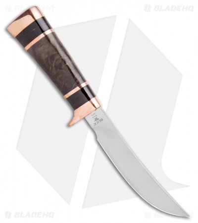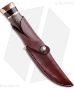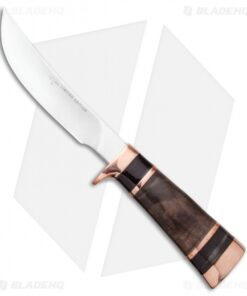 This Buck Skinner is from a limited run of custom level knives. It features a D2 blade, and a gorgeous handle with copper bolsters, buffalo horn accents, and a walnut grip. This knife includes a premium leather sheath and a wooden presentation box.