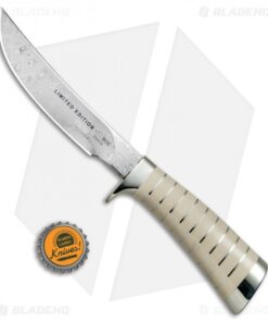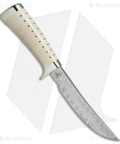 This Buck Expert Hunter Legacy model is built with a rich stacked ivory handle and a nickel silver guard. The blade comes in a trailing point style made from polished Damasteel. It is limited to just 100 pieces worldwide and includes an impressive walnut presentation box.