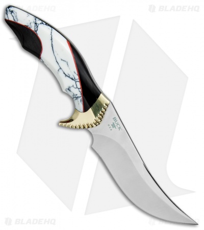 This Buck Kalinga Legacy model is built with an elegant white turquoise and buffalo horn handle with a brass guard. It is limited to just 100 pieces worldwide and includes an impressive walnut presentation box.