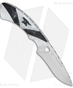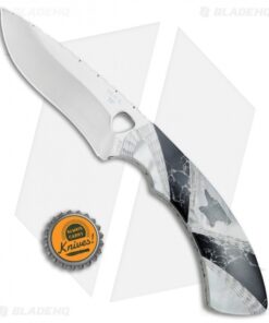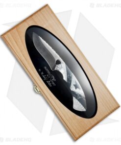 The Buck Painted Pony Blacksmith is based on a classic Buck fixed blade design that has been updated with collectible materials. It features a 420HC steel blade with an elegant mirror polished blade. The handle sports mother of pearl and a Buck anvil logo inlay made from black recon stone. Item includes an Alder wood inlay glass top display box. This limited edition series is serialized and includes a certificate of authenticity.