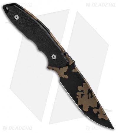 Lucas Burnley joined forces with Millit Knives to bring you this high performance Huck fixed blade knife. This model is built with a black G-10 handle and a black and bronze camo Cerakote finished blade. With this design, Lucas was inspired by the fixed blade knives of his childhood that were simple and highly effective. This mid sized fixed blade offers the versatility needed to easily tackle outdoor, utility, and EDC cutting tasks. Item includes a kydex sheath system for secure and comfortable carry.