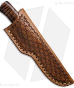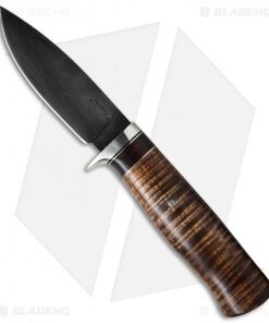 This Drop Point Hunter from Burr Oak Knives has a clay hardened W2 steel blade and the ironwood handle is accented with maple and a polished nickel silver blade guard. The balance and feel on this knife in hand is exceptional. Includes a brown basket weave sheath.