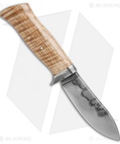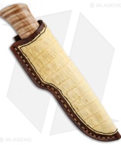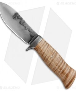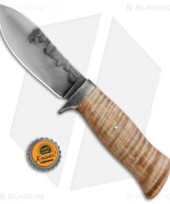 This Nessmuk from Burr Oak Knives has a clay hardened W2 steel blade and the stabilized Curly Maple handle is accented with a wrought iron blade guard. The balance and feel on this knife in hand is exceptional. Includes a leather sheath with an albino alligator overlay.