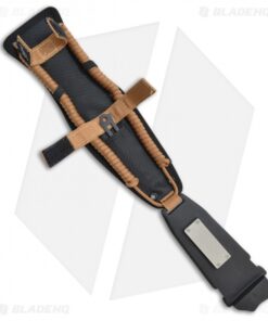 - Brown polymer handle over a full tang construction with a knurled steel pommel and lanyard hole.