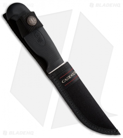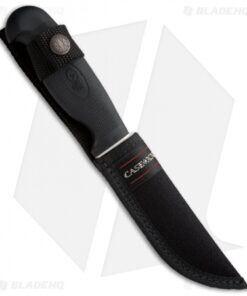 This Lightweight Hunters fixed blade knife has an up-swept clip point bowie 5″ stainless surgical steel blade. The blade has a compound bevel grind and aggressive jimping along the bottom of its spine for better a thumb grip and control. The black rubber handle features the Case XX logo embossed on both sides of it with a knurled texture surrounding the logo. The handle has a slight guard with a comparatively large pommel. There are two deep finger grooves on either end of the handle that makes for a very comfortable grip. Includes a Ballistic nylon Sheath with a plastic liner and a 4.5″ belt loop with a button lock strap. (LT265-5 SS)