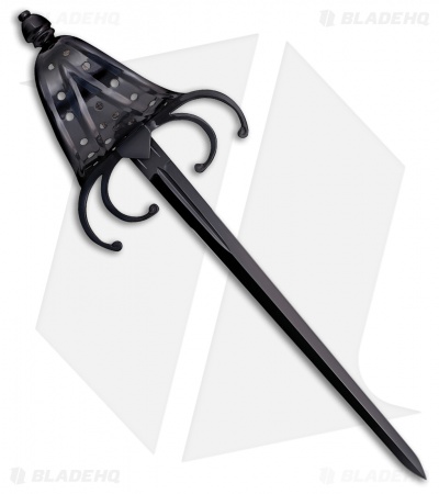 - Wire wrapped handle with curved claw guard and crab claw quillions.