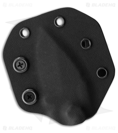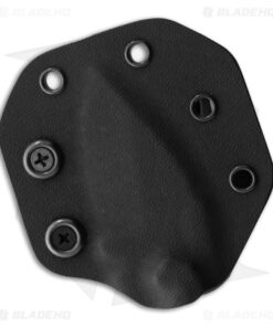 - Black Kydex sheath with a belt hook for bag or belt carry.