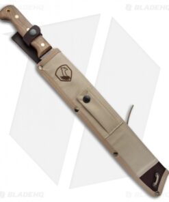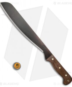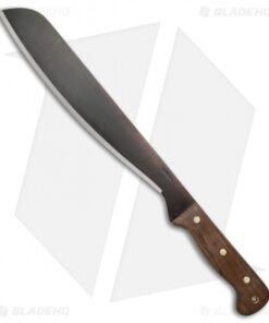 This Condor Australian Army Machete features a carbon steel blade and a walnut wood handle. The blade is made from 1075 high carbon steel with a black patina finish. Every edge of this machete has been hand finished and honed to a razor sharp edge for managing any outdoor cutting chore. The handle provides a smooth, ergonomic grip with brass pins and a lanyard hole. Item includes a durable canvas sheath with a leather belt loop.