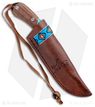 The Condor Blue River is a collection worthy fixed blade backed up by a solid Condor Build. This Blue River fixed blade is outfitted with a 1095 steel blade and a walnut handle with reconstituted turquoise stone inlays. Item includes a leather lanyard cord and a custom leather belt sheath. Add some style to your outdoor gear with the Condor Blue River Series.