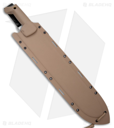 The Bolo Machete from Condor Tool and Knife is a redesign of the class Condor machete, with more tactical consideration given. This knife is made from hard-use 1075 high carbon steel, which gives the blade of this machete excellent toughness. The polypropylene handle is super durable, making this machete nearly indestructible. This knife includes a kydex sheath with a leather belt loop.
