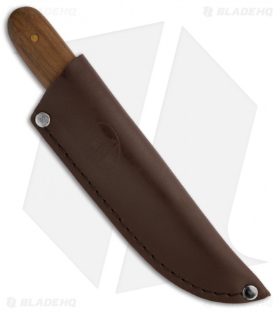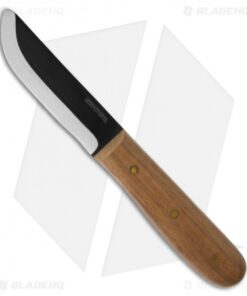 The Bushcraft 4″ Basic fixed blade is the middle-sized Condor Bushcraft knife. It has a Scandi ground 1075 high carbon steel blade. The two-tone finished blade is 3 mm thick and black epoxy powder coated. Hardwood scales are contoured for excellent grip and feel. The Bushcraft Basic knife comes with a brown leather sheath for belt carry.