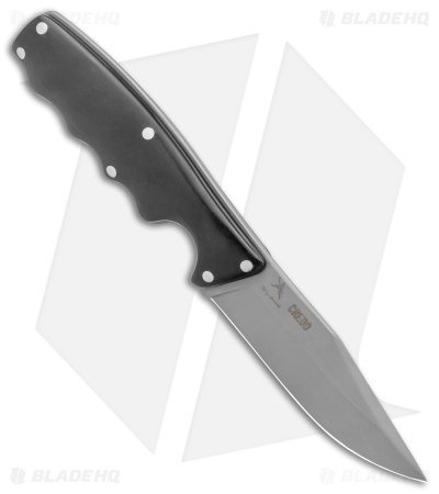 - Black G-10 handle with finger grooves.