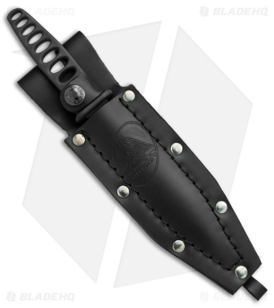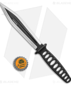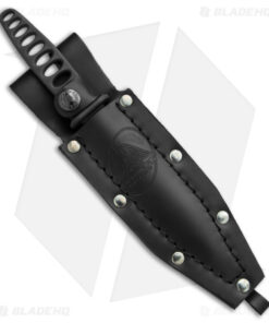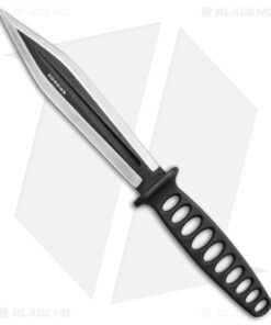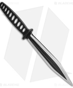 - Dagger-style 440 carbon steel blade with a two-tone black finish.