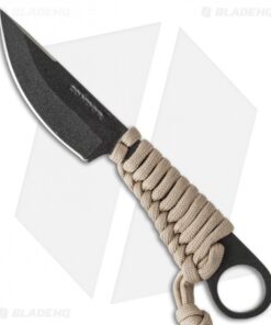 The Condor Kickback is a lightweight knife made from a solid piece of black traction powder coated 1075 high carbon steel. The first half of the blade’s spine has been sharpened for added piercing capabilities. A paracord wrapped handle provides a secure grip and easy draw from the sheath. Includes a Kydex sheath and ball chain.