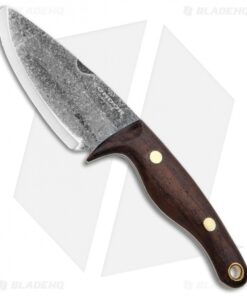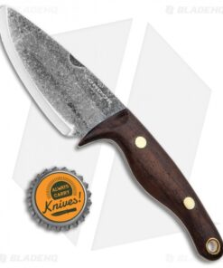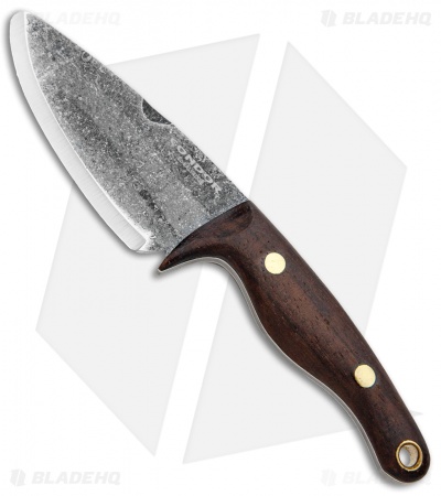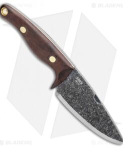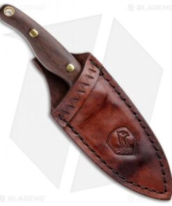 The Kimen from Condor Tool & Knife is a compact camping and general use knife. It features a contoured dark walnut wood handle with a natural finished 1095 high carbon steel blade. The blade has a blunted tip and two dimples on either side of the spine that offer increased control. The leather sheath comes equipped with belt loop for easy belt carry.