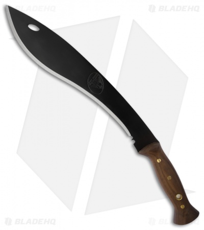 The Heavy Duty Kukri fixed blade from Condor Knife & Tool. Black finished blade with 1075 high carbon steel. Hardwood handle. Comes with a leather sheath.