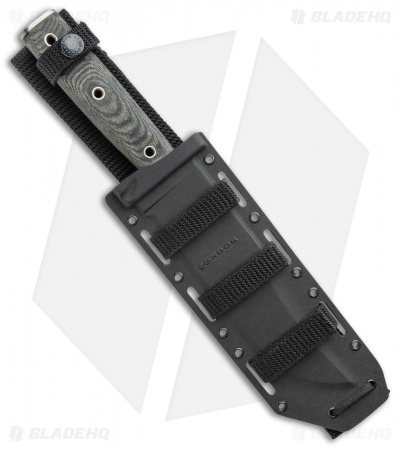 The Condor Operator Bowie is a big, tactical knife designed by Joe Flowers. The blade has a long clip point, as well as a deep belly. This makes the knife excellent for skinning, stabbing, chopping, etc. The handle is made of black micarta slabs pinned to the full tang, with a steel pommel. The sheath is made of Kydex, and includes a MOLLE back.