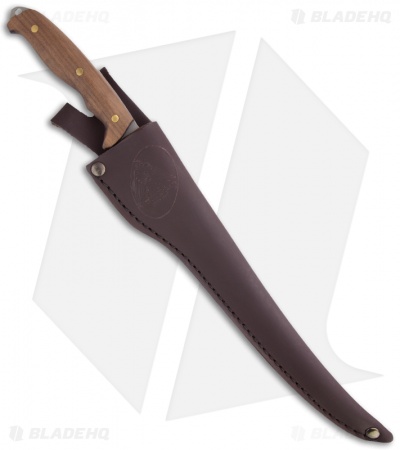 The Tiburon Fishing fixed blade from Condor Tool & Knife features 420HC steel and is thin with some flexibility for filleting. The handle has hardwood scales with pin construction over its full tang giving the knife great control while filleting your fish. This knife includes a brown leather sheath.
