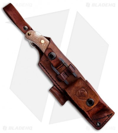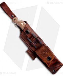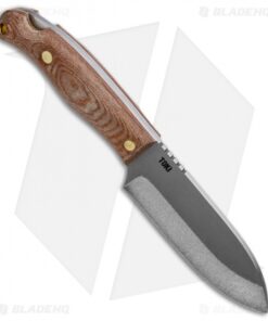 The Condor Toki Knife is named after a 15th century Chilean tribal leader. This outdoor fixed blade is built with a full-tang 1075 high carbon steel blade in a blasted finish. Its handle sports contoured tan micarta scales with a palm swell and a divot for use as a bow drill. The Toki includes a heavy-duty leather sheath with a dangler attachment for belt carry.