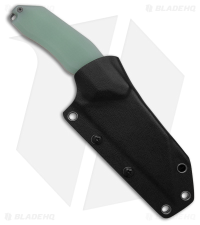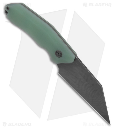 From Damned Designs comes their latest fixed blade knife offering: Fenrir. Named for the monstrous wolf god of Norse mythology, this knife sports a wolf-fang reverse tanto blade made from Sandvik 14c28n steel for budget friendly and well-balanced performance. The handle features jade G-10 scales. The pronounced finger groove and palm swell keep your hand firmly planted on the handle so you can take on any task with ease.