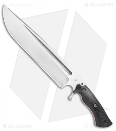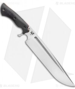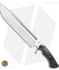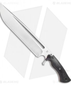 The Dark Timber Knives Devil’s Horn is one intimidating piece. This heavy duty blade gives off quite a menacing vibe as you unsheathe it with robust action. The 11.75″ drop point blade has a two-tone satin and stonewash finish with a well-defined blood groove. Its weight is nicely dispersed throughout the knife on account of the full tang construction. The handle is made with strong micarta with stainless steel hardware.