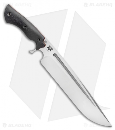 This Devil’s Horn fixed blade knife comes equipped with a black micarta handle and orange liners. Its blade has a two-tone finish.