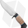 This Devil’s Horn fixed blade knife comes equipped with a natural micarta handle and black liners. Its blade has a two-tone finish.
