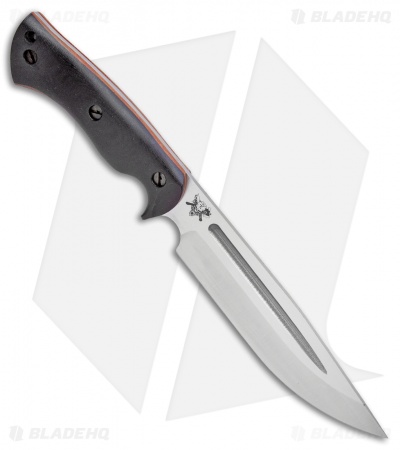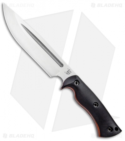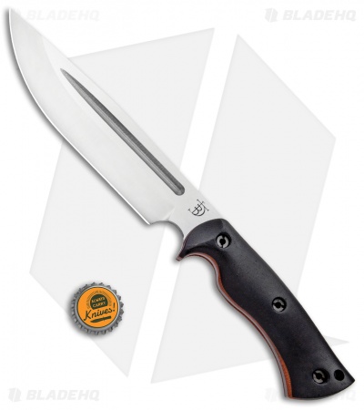 This Honey Badger fixed blade is outfitted with black micarta scales over natural micarta liners. Its blade sports a satin finish.